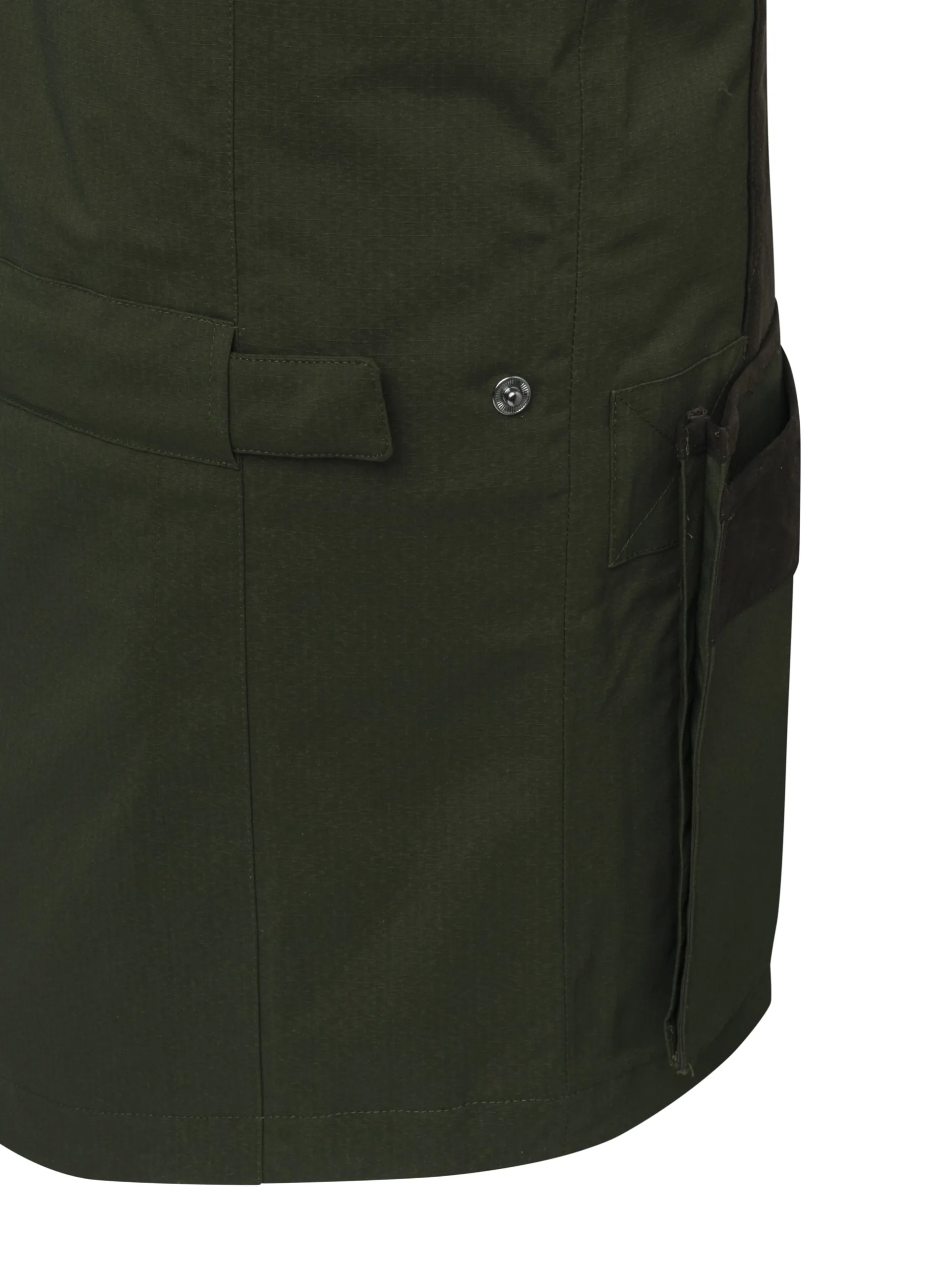 • Double-entry front pockets with flat flap and microfiber reinforcements