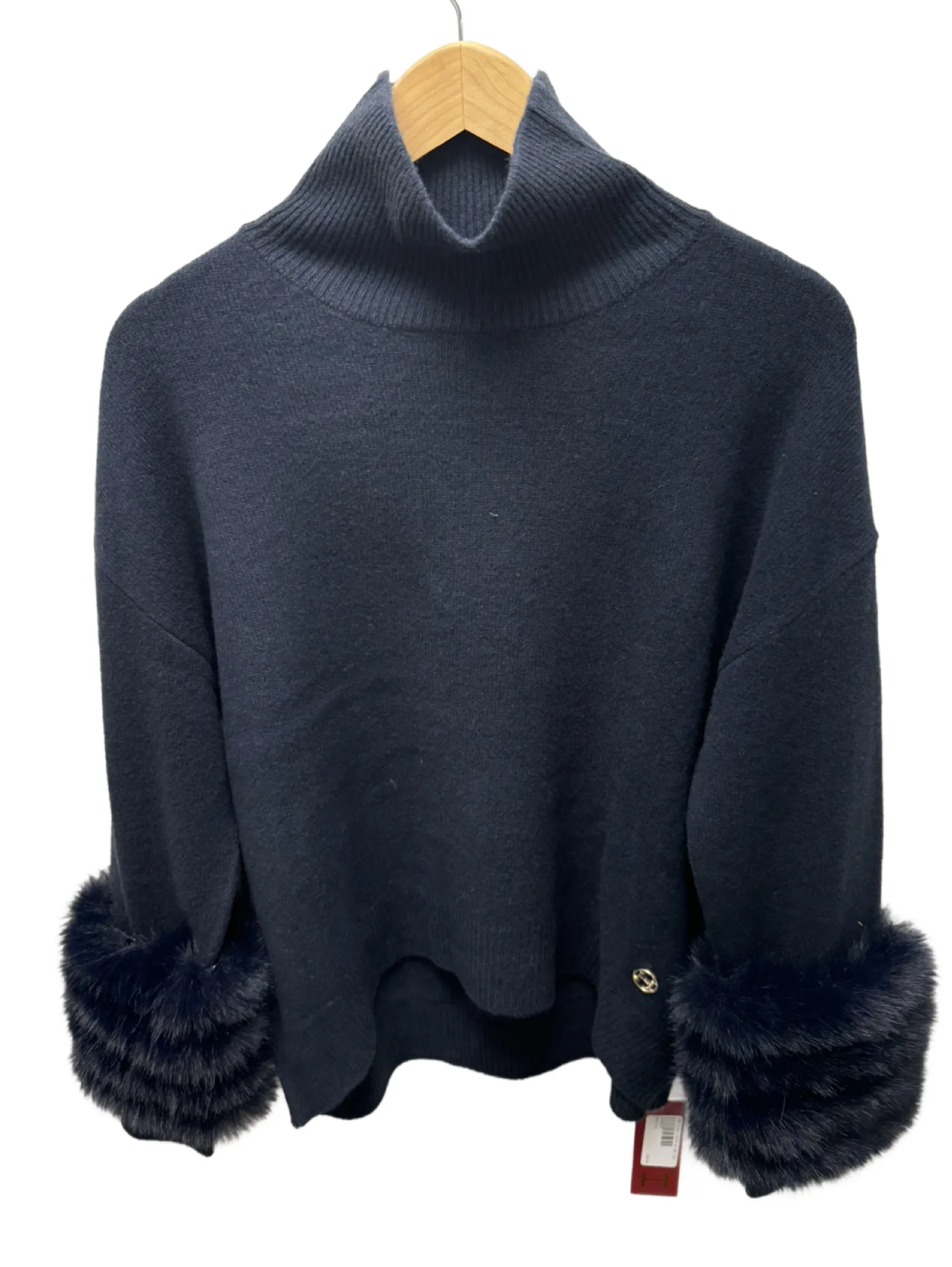A beautiful 100% merino wool jumper from Hunt & Hall with detachable faux fur cuffs, a stylish and cozy addition to your wardrobe. This type of jumper combines the luxurious warmth of merino wool with the chic look of faux fur cuffs, making it a fashionable choice for colder weather.